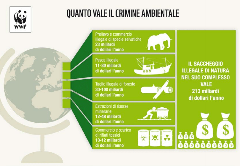 L’Italia, così come l’Europa in generale, è uno dei principali consumatori di pelli di rettili e pellame pregiato in generale, destinati all’industria della moda. Di tutti i tipi di reati ambientali, quelli contro animali e fauna selvatica si piazzano al secondo posto in classifica: i dati del 2017 della CITES parlano di 20.000 accertamenti su animali vivi o loro derivati intercettati nel commercio internazionale; a livello nazionale, secondo il WWF, ogni anno vengono uccisi illegalmente oltre 6 milioni di uccelli, soprattutto fra acquatici e passeriformi.